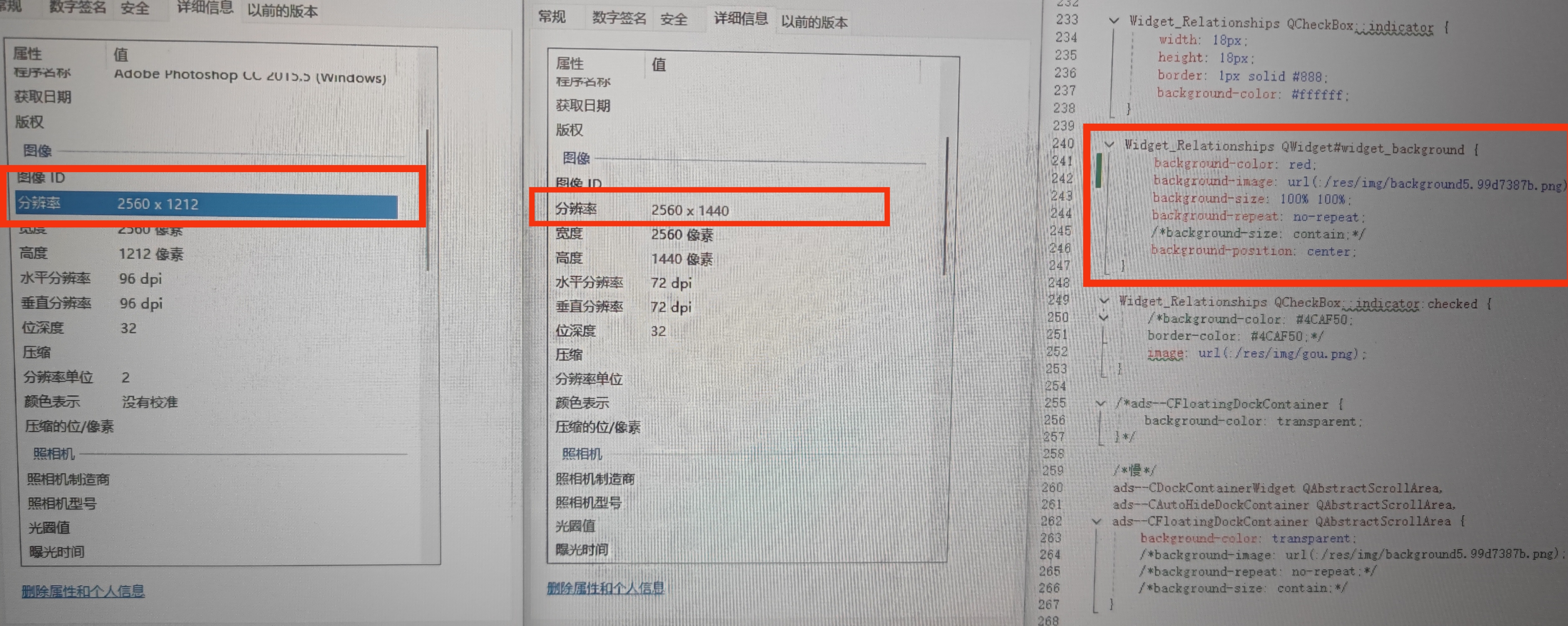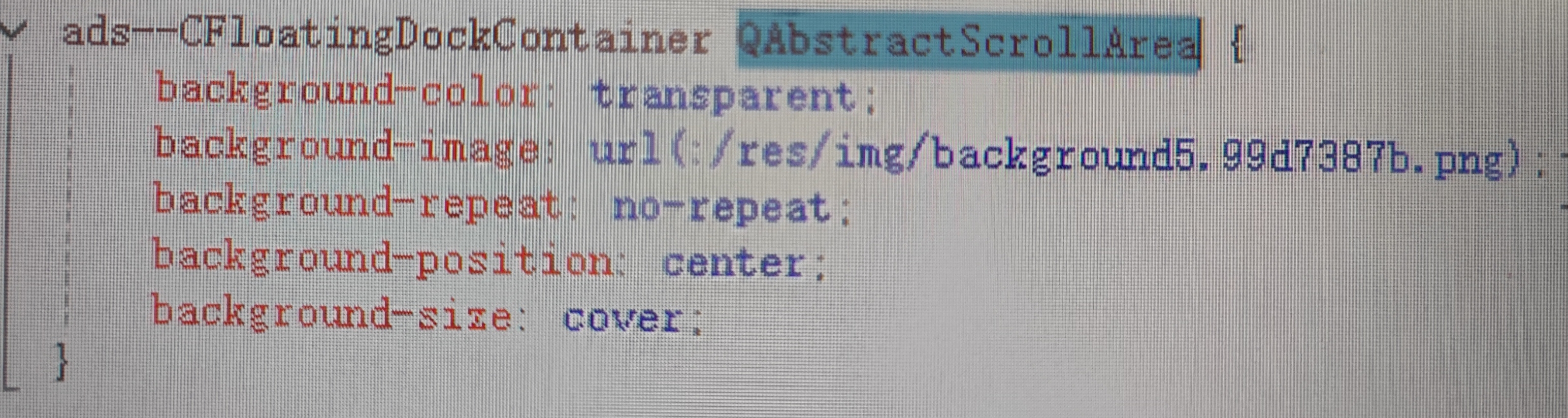 # 说明 在用qss进行样式设计时,需要考虑到样式的统一,于是就用到背景图片进行设置。但是没想到在这里面还是有一些的问题,于是记录一下,以便以后参考。 目前使用的是vs2022+qt5.15.17 # 问题1 背景无法生效 这个问题有时候会比较莫名其妙,有点难以理解。比如,我设置了一个QWidget的背景图片,但该Qwidget被加入到了另外一个界面时,该背景图片设置却无效。 对于这种情况,我们一般先设置一个背景色来显著标识生效的效果,确认生效,以及生效范围后,再设置背景图片。 ```css QWidget { background-color:red } ``` == 为了高效的生效,一般会加入一个QWidget并至于底层,以让其保持生效 == ```css QWidget#widget_background { background-color:transparent; background-image:url(:/res/bk.png); background-size:cover; background-repeat:no-repeat; } ``` # 问题2 Ads组件设置背景图片效率低下 这个问题也有点奇怪,但是最好还是在子窗体中设置一个widget_background在底层,以保持高效生效来解决此问题。 下图是ads组件(QtAdvanceDocking)设置背景图片生效,但是设置图片后,界面打开明显变慢了!== 所以不建议使用 ==  # 问题3 图片无法自适应的问题 这个问题也是挺莫名其妙的感觉。解决方式也是奇怪。 开始,图片能贴上,窗口全屏时,无法覆盖全屏,总会留有空白。虽然能通过注释background-repeat字段,让其重复以覆盖。但是最好还是通过一张照片拉伸适应窗体最合适。 最后通过更换背景图片,才发现图片不成比例时,这个问题就可能出现。 我换了一张2560x1440px的照片就没有问题。 2560x1212px图片就不能全屏覆盖!不知原因。 所以用ps将图片拉伸为2560x1440px(16:9)图片就可以了。  编辑∶myhappyandy